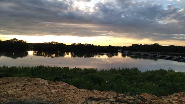 Река Ока во всей своей красе рядом с пантонным мостом в городе Павлово