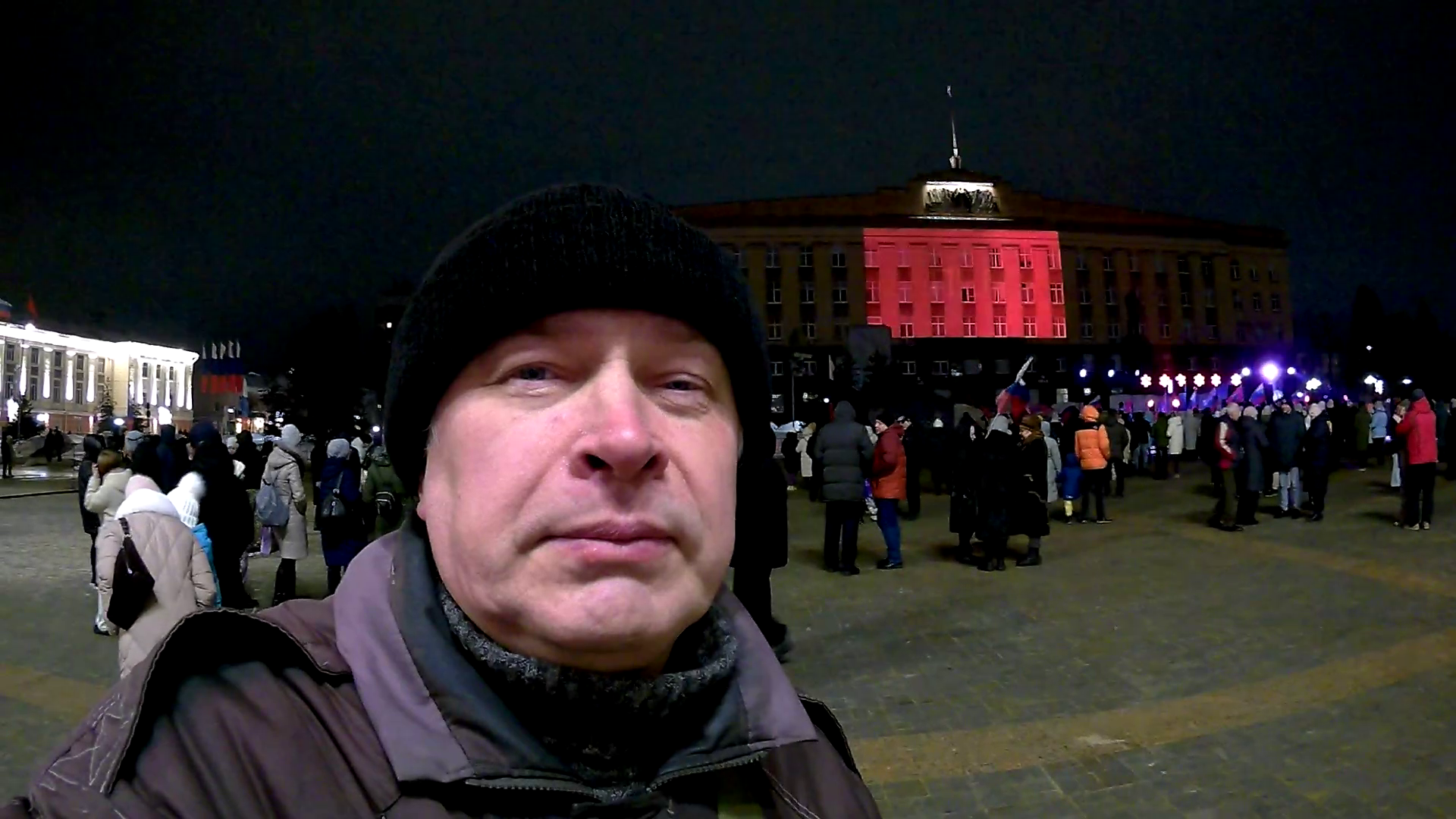 Я пришёл на площадь, а на площади вечерний концерт на фасаде здания