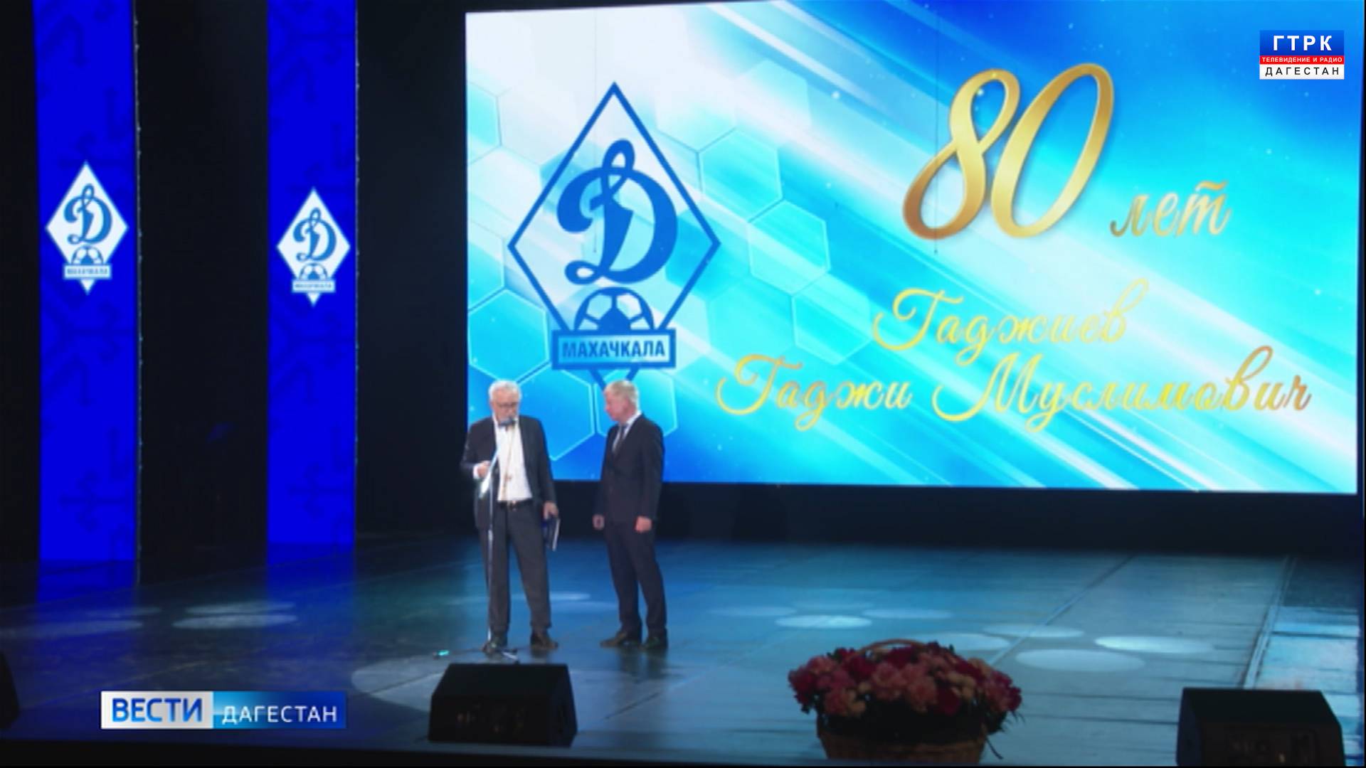Сегодня свой 80-ти летний юбилей отмечает один из самых известных футбольных тренеров Гаджи Гаджиев. С этой датой Гаджи Муслимовича поздравил Владимир Путин. На торжественном вечере приветственный адрес зачитал глава Дагестана Сергей Меликов. Поздравить именитого коллегу приехали и ветераны российского футбола. Из Русского театра репортаж Магомеда Баширова