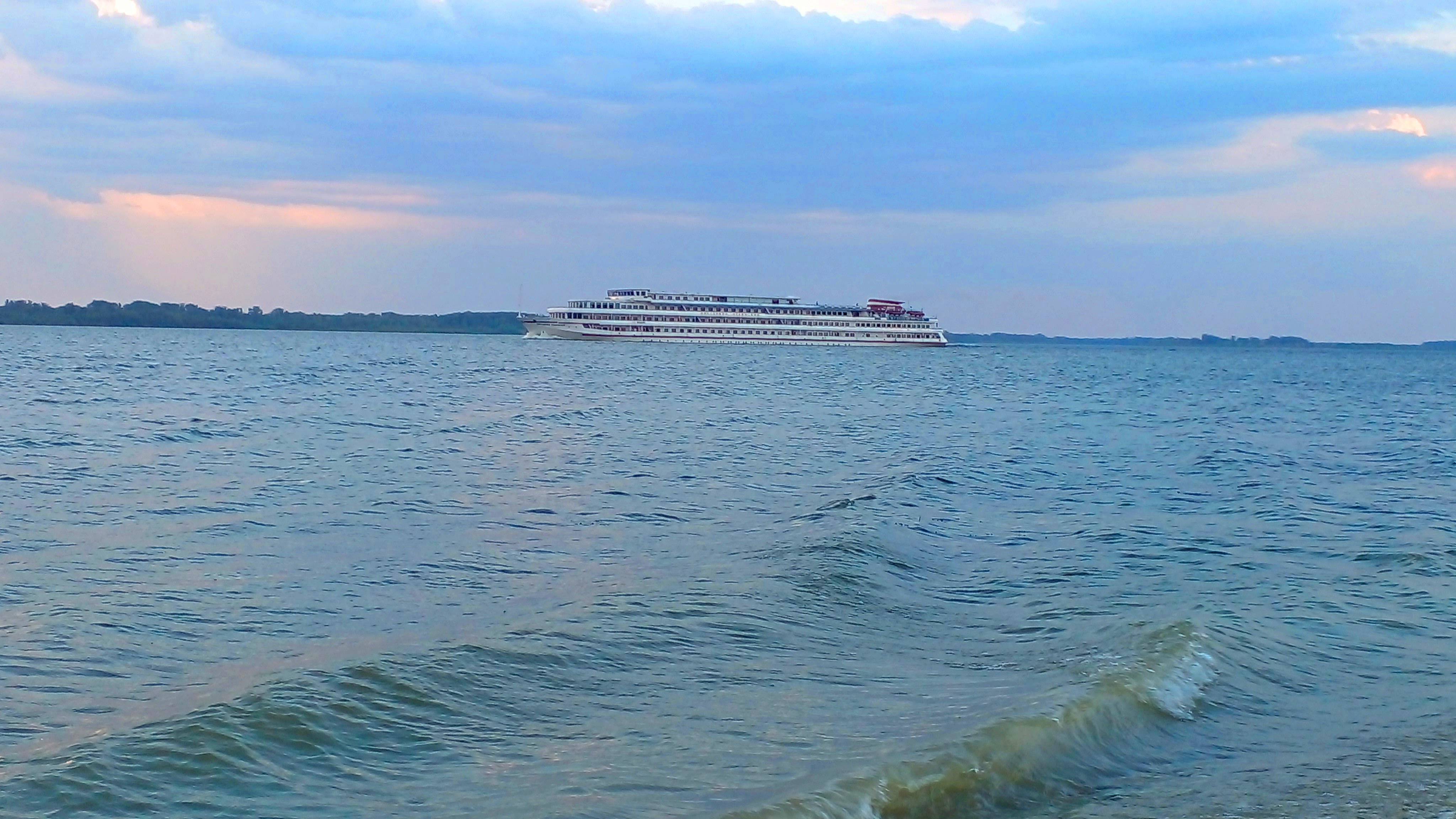Когда приехали на Волгу на ночную рыбалку и ждали ночи, вечером мимо нас проплыл теплоход "Виссарион Белинский", а в это время люди на сапборде плыли почти на середине реки. Опасная ситуация - волны от теплохода могут перевернуть сапборд! #опасностьнареке #сапборд #рекаВолга #правиланаводе #