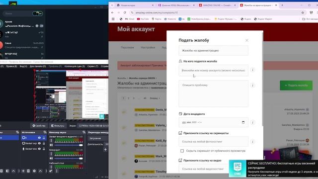 Написать в поддержку