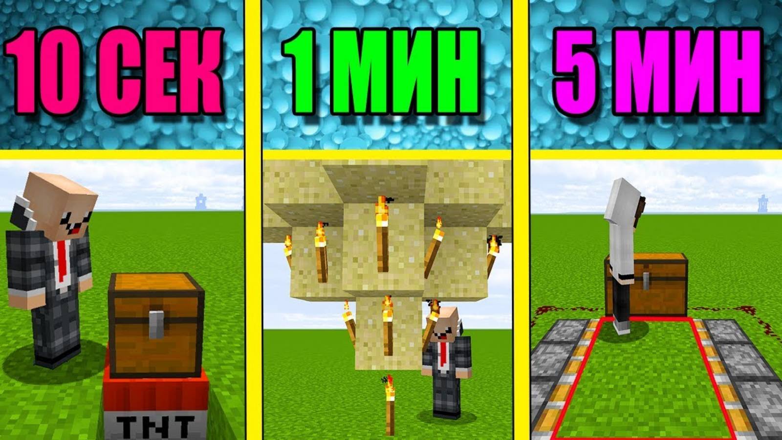 НУБ И ПРО СТРОЯТ ЛОВУШКИ ЗА 5 МИНУТ _ 1 МИНУТА _ 10 СЕКУНД! БИТВА СТРОИТЕЛЕЙ!