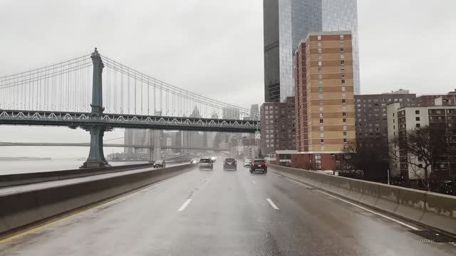 Поездка по дождливому Нью-Йорку в формате 4K - от центра Манхэттена до Бруклинского пляжа Айленд-Бич