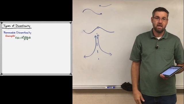 Here we discuss the difference between a continuous function and a function being continuous at a point. We also introduce the different types of discontinuities and how to find them.