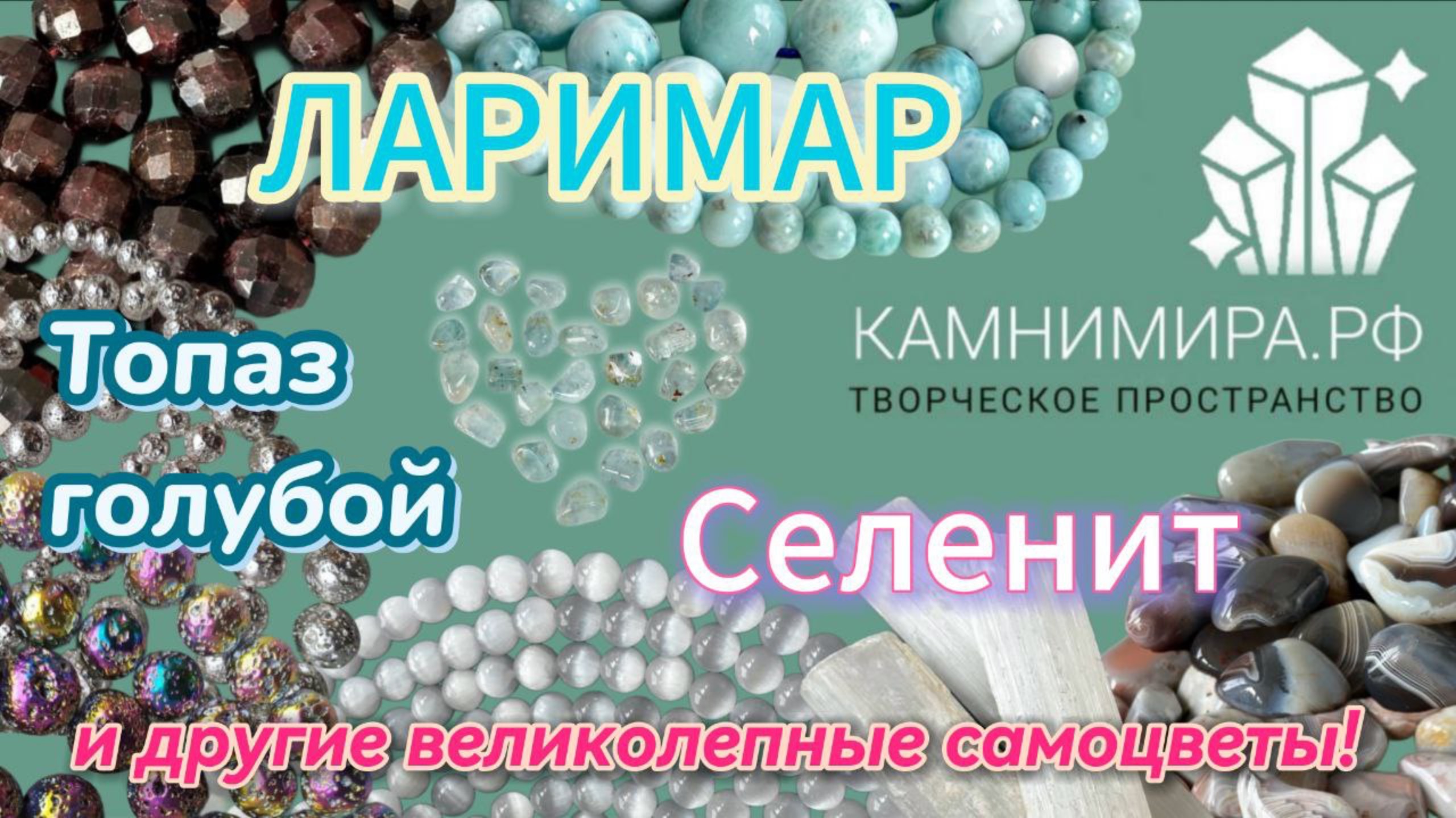 Творческое пространство "Камни мира" приветствует всех! Предлагаем натуральные камни со всего мира по лучшим ценам. Все поставки проверяет геммолог. Купить камни можно у нас на выставках, ярмарках (график публикуется в телеграм-канале https://t.me/kamnimir). Есть шоу-рум в Краснодаре, звоните 89002736998 С нашим ассортиментом можно ознакомиться в тг-канале и на сайте камнимира.рф, там же можно отправить предварительный заказ. Делаем доставку по России и миру. Если вам что-то из обзора понравилось, можно сделать скрин-шот и написать нашему менеджеру на WhatsApp +7 961 523-81-07 или Telegram @kamni_mira_krd Более подробная информация о товарах этого обзора размещена в телеграм канале https://t.me/kamnimir. Подписывайтесь на канал. Товары из обзора: https://камнимира.рф/products/larimar5 - Ларимар шары, размер в ассортименте https://камнимира.рф/products/celenit2 - Селенит белый 8,3-8,5 мм стабилизированный- 1200 р за нить 38 см около 44 шт. (код 4117) https://камнимира.рф/products/celenit3 - Селенит белый 10,3-10,5 мм стабилизированный - 1500 р за нить 37 см около 36 шт (код 4118) https://камнимира.рф/products/lava - Вулканическая лава в гальваническом покрытии шары цветные и цвет серебро, размер в ассортименте https://камнимира.рф/products/chrysocolla2 - Хризоколла с включениями шары https://камнимира.рф/products/agatriolit - "Черепаховый агат" риолитовая порода, шары https://камнимира.рф/products/agate31 - Агат "Ботсвана" премиум шары https://камнимира.рф/products/agate30 - Агат Ботсвана премиум, шары в огранке 7,3-8,5 мм - 1850 р за нить 37 см около 46 шт (код 1769) https://камнимира.рф/products/garnet9 - Гранат природный огранка ромб 7,8-8,4 мм - 1850 р за нить 38 см около 48 шт (код 4122) https://камнимира.рф/products/garnet11 - Гранат премиум качества 5А ювелир. огранка 4,0-4,5 мм на резинке 50 см около 122 шт – 3500 р (код 4124) https://камнимира.рф/products/malahit3 - Малахит, шары в огранке https://камнимира.рф/products/charoite4 - Чароит с породой огранка 3,4-3,5 мм - 1 850р за нить 39 см около 118 шт (код 2956) https://камнимира.рф/products/diamondherkimer - Горный хрусталь, двухвершинные кристаллы "Алмазы Херкимера" 2-3х3-4 мм - 2500 р за нить 39 см (код 2509) https://камнимира.рф/products/rhodochrosit1 - Браслет родохрозит 8,1-8,7 мм около 22-24 бусин – 1800 р за шт (код 4121) https://камнимира.рф/products/saphirin - Браслет “Сапфирин” голубой агат https://камнимира.рф/products/agate17 - Агат розовый "Ботсвана" галтовка малая и крупная https://камнимира.рф/products/agate14 - Агат коричневый "Ботсвана" галтовка малая и крупная https://камнимира.рф/products/topaz - Топаз голубой галтовка малая и крупная https://камнимира.рф/products/celenit1 - Селенит белый палочки крупные 10х1,5-2 см – 200 р за шт (код 1170) Благодарю за комментарии, лайк и подписку! Очень старались сделать выпуск ярким и интересным!