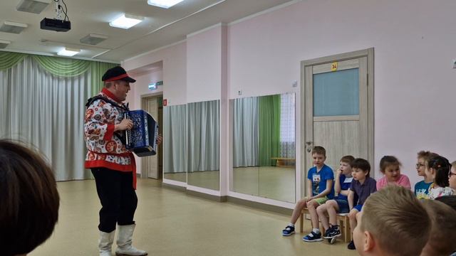 Гармонист Андрей Чешуин в детском саду города Кирова. 24 апреля 2024 года.