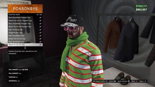 Gta 5 Christmas DLC festive Hat's Multiple Christmas festive head gear Caps,hats,etc Please like share & subscribe Thank you for watching Grand Theft Auto V https://store.playstation.com/#!/en-gb/tid=CUSA00411_00