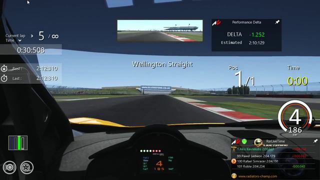 Realism: Traction Control: Factory ABS: Factory Stability Control: OFF Fuel Consumption: OFF Mechanical Damage: 90% Tyre Wear: 1x Tyre Blankets: OFF Slipstream Effect: 1x