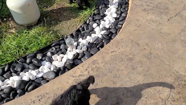 щенки подрастают и хотят познавать мир, но пока мы ограничемся нашим задним двором. свежий воздух пойдёт им на пользу, но не стоит забывать что эти малекие пылесосы начинают пробовать всё на зуб и не совсем съедобное. поэтому за ними нужен глаз да глаз.