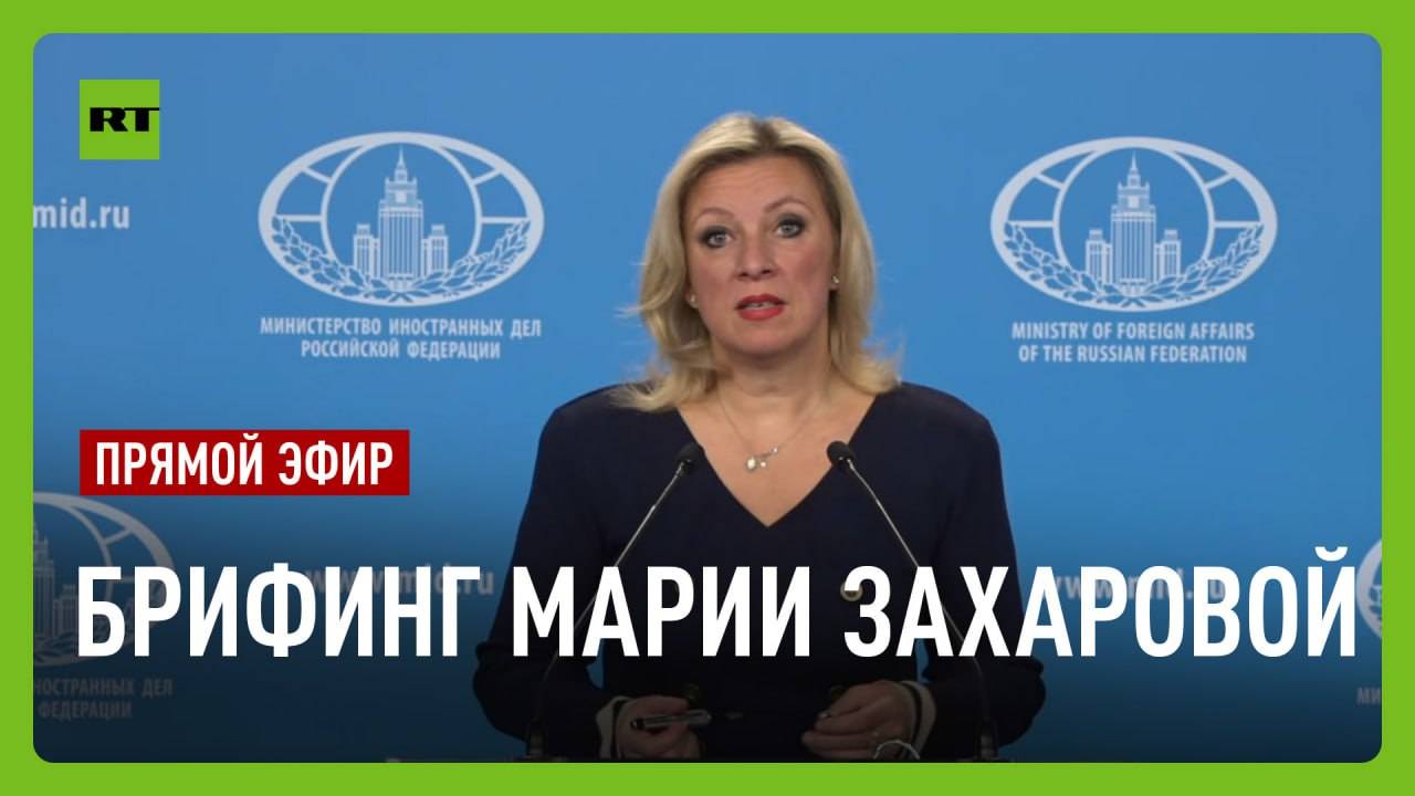Прямая трансляция. Официальный представитель МИД России Мария Захарова проводит брифинг по текущим вопросам внешней политики.