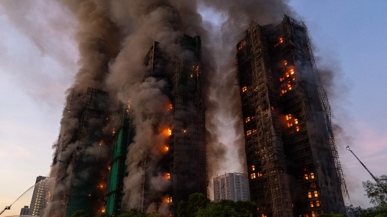 Масштабный пожар, Гонконг, горит 2000 квартир одновременно.