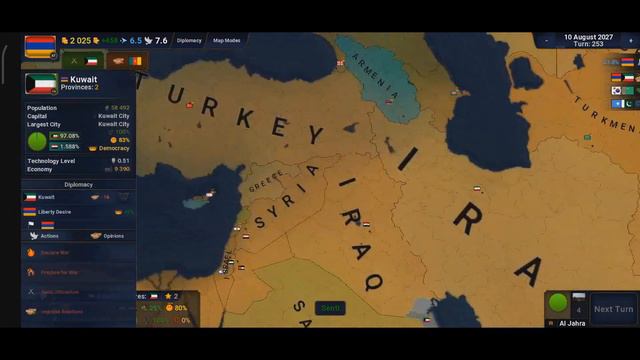 Im a step closer to reforming Armenian kingdom. I took adventage of the weak states on my claimed territory and reintegrated it back to me. I also made some friends further away from me like Kyrgyzstan Djibouti Bahrain and even Bosnia and Herzegovina.