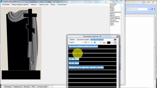 В компаниях, изготавливающих надгробные памятники, эскизы создают художники, при помощи Photoshop или других графических редакторов. Конструктор памятников из программного комплекса РИТУАЛ ПРОФ позволяет быстро и легко создавать эскизы обычному пользователю, не владеющему профессиональными программными инструментами художников и дизайнеров.