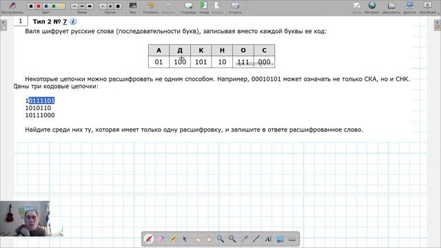 разберем 2 задание Кодирование и декодирование информации Декодирование двоичной последовательности https://youtu.be/aUMmBXGRocI?t=193 Демо ОГЭ по информатике 2025 задание №2 https://youtu.be/aUMmBXGRocI?t=381 Пример с сайта Полякова, Обратное условие Фано https://youtu.be/aUMmBXGRocI?t=614 Примеры с сайта РешуОгэ https://youtu.be/aUMmBXGRocI?t=1119 Условие Фано https://youtu.be/aUMmBXGRocI?t=1268 Анонс будущего занятия