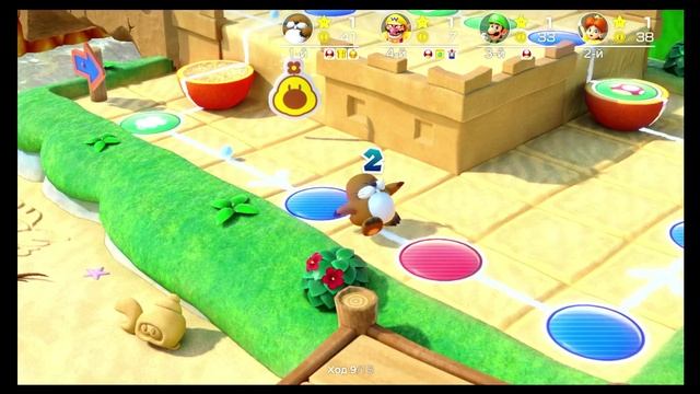 Super Mario Party — компьютерная игра в жанре party, разработанная студией NDcube и изданная компанией Nintendo для игровой консоли Nintendo Switch в 2018 году. Это одиннадцатая основная часть серии Mario Party, а также первая, выпущенная для Switch. По сюжету Марио и его друзья устраивают вечеринку, чтобы определить, кто достоин звания суперзвезды. В спор включается Боузер с сыном, а судьями назначаются Тоад, Тоадетта и Камек. Главный режим — «Mario Party» — рассчитан до четырёх игроков, которые ходят поочерёдно по игровому полю. Во время хода бросается кубик, определяющий количество клеток, на которое перемещается персонаж. Каждая клетка выполняет уникальную функцию: например, синие начисляют три монеты, красные — вычитают, поля удачи и невезения могут дать бонусы или наказания. По завершении раунда (после ходов всех игроков) запускается мини-игра, где участники соревнуются за монеты. Мини-игры различаются по правилам: есть состязания «каждый сам за себя», «2 на 2», «1 на 3», режимы с гироскопическим управлением, поддержкой HD Rumble и другие. Победителем становится игрок с наибольшим количеством звёзд и монет в конце партии. Монеты также можно тратить на разовые бонусы: увеличение собственного броска, уменьшение броска сопернику, использование «золотой трубы» для мгновенного перемещения к звезде. Ключевое отличие Super Mario Party — внедрение индивидуальных кубиков для каждого персонажа: у каждого героя альтернативный кубик с уникальными наборами значений и шансами (например, у Марио — повышенная вероятность выбросить «3», у Пич выпадают только чётные числа, у Боузера — риск высоких чисел, но возможность потерять монеты). По состоянию на март 2025 года тираж игры составляет 21,16 млн копий по всему миру, что делает её самой продаваемой в истории серии и одной из десяти самых популярных игр на платформе Switch.