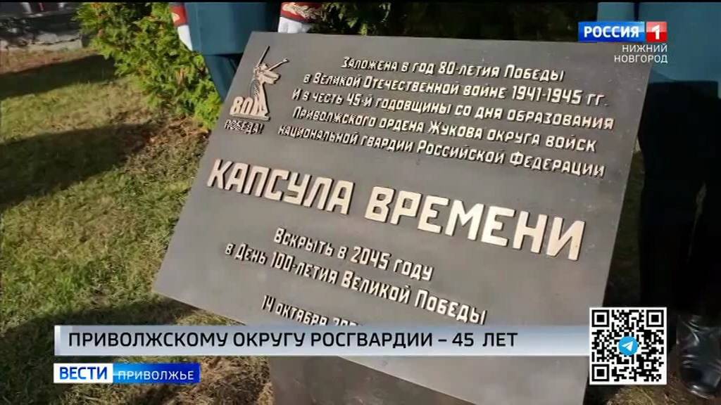 Приволжский округ Росгвардии, удостоенный ордена Жукова, отметил 45-летний юбилей. Поздравить военнослужащих прибыл полномочный представитель Президента в ПФО Игорь Комаров. К поздравлениям присоединился и губернатор Нижегородской области Глеб Никитин. В числе почетных гостей — ветераны округа и бывшие командующие. Знаковым событием торжества стала церемония закладки капсулы времени. В нее поместили послание для будущих поколений с наказом вскрыть её в год векового юбилея Победы — в 2045 году. Также в сквере перед зданием управления округа заложили памятный камень в основание часовни во имя святого князя Владимира.