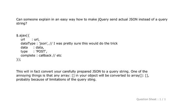 jQuery : How to send JSON instead of a query string with $.ajax?