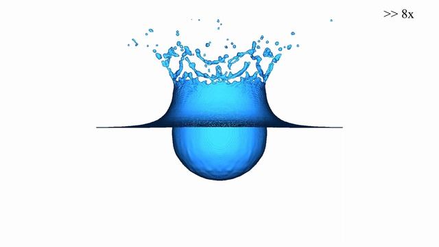 This is a simulation of a 5mm diameter 9.2m/s terminal velocity raindrop impacting a deep water pool (5cm x 5cm x 2cm). The impact is shown for approximately 7 Milliseconds. The Reynolds number is 35195, Simulation box size is (400 x 400 x 340), memory utilization is 9.4GB. Compute time for this simulation without graphics enabled is approximately one minute. The terminal graphics are done via ANSI escape sequences and the block character "\u2580" to double vertical resolution. The standard terminal supports 16 different colors for both text and background. The image is first rendered in 1920x1080 resolution by the GPU, then downscaled to the currently available console resolution, then the colors are mapped into console 4-bit color space and finally the image is printed pixel by pixel, or rather character by character. FluidX3D is a real time 3D fluid simulation based on the lattice Boltzmann method. It is written in OpenCL C (GPU code) and optimized to the physical limit (video memory bandwith). Graphics are done with the OpenCL C version of Line3D, the fastest graphics engine ever written for primitive shapes like lines, dots, circles and triangles. It can rasterize up to 2 billion lines per second. The free surface is done with the volume-of-fluid (VoF) extension to LBM. It allows simulating free surfaces with a sharp interface layer. The volume force (gavity) is implemented with the Gou forcing scheme. Visualization of the surface is done with the marching cubes algorithm (implemented in OpenCL C). http://paulbourke.net/geometry/polygonise/ Timestamps: 0:00 - Intro 0:02 - running on a remote linux Cluster (AMD Radeon VII), orthogonal view 0:27 - running on desktop PC (Nvidia Titan Xp), orthogonal view 0:43 - running on desktop PC (Nvidia Titan Xp), projection view 0:56 - running on desktop PC (Nvidia Titan Xp), flags viewed alongside surface Music: Rolipso - Delight More information at http://www.projectphysx.de