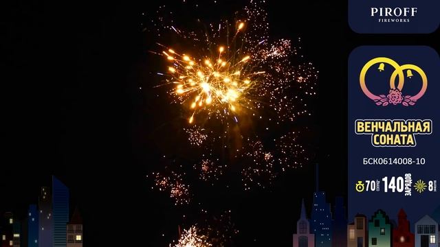 Батарея салютов с веерными залпами Венчальная соната БСК0614008-10 140 зарядов 1 и 0,8 дюйма