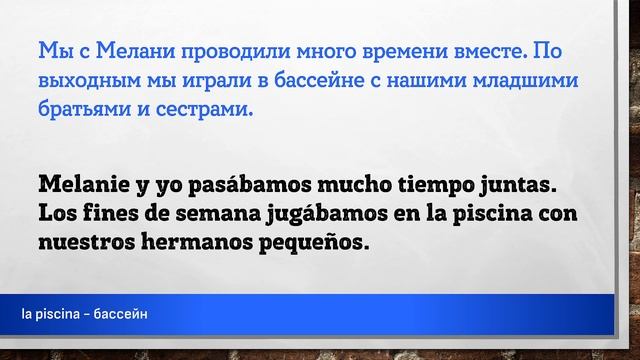 Данный материал предназначен исключительно в образовательных целях. Цель – заставить мышление учащегося формировать фразы, части фраз, на испанском языке. Каждая фраза повторяется три раза. Повторения происходит не подряд, а с некоторым "смещением", заставляя всё время мысленно переключаться на другую фразу. Пауза между фразами служит для того, чтобы вспомнить хотя бы одно слово, часть фразы или всю фразу на испанском языке. Чем длиннее фраза на русском языке – тем длиннее пауза до фразы на испанском языке. Достаточно, если человек самостоятельно начинает формировать хотя бы кусочки фразы, некоторые слова. Данный вид упражнений не стоит делать более одного часа за один раз. Достаточно прослушивать такие упражнения в фоновом режиме: замимаясь домашними делами, находясь в дороге или на прогулке, занимаясь спортом. Чтобы выучить любой язык необходимо «провести с ним» 10 000 часов. Урок основан на эпизоде подкаста взятом на сайте http://podcast.duolingo.com Полная ссылка на эпизод подкаста с транскрипцией: https://podcast.duolingo.com/episode-12-sin-verguenza #испанский #испания #слова #фразы #aprender #español #españa #español #испанскийязык #испанскийбесплатно #испанскийэффективно #учимиспанский #испанскийучить #shadowing #ShadowingTechnique #Lerntechnik #произношение #грамматика #subjuntiv #expresiones #shadowingmethode #эффективно #españolonline #españoloffline #aprenderespanolonline #pimsleur #paulpimsleur Слова и выражения из этой части подкаста: ================================================ Estados Unidos - США, Соединённые Штаты Америки REF (англ. Refugee) - (здесь презрительно) шарамыга, беженка, иностранка aprender - изучать, узнавать, понимать atacar - нападать, атаковать avanzar - двигаться вперед, развиваться, прогрессировать causar - вызывать, причинять, создавать, стать причиной el acento - акцент, ударение el barrio - район, квартал, пригород el insilto - оскорбление el lapicero - ручка, авторучка, карандаш furioso - злой, разъярённый, взбешенный hablaba - говорила в прошлом, в течении некоего времени iba a... (+ глагол) - говорить о будущем, когда то давно... la ciencia - наука, естественные науки la crisis económica - экономический кризис la mejor opción - лучший способ, лучший вариант la piscina - бассейн la vergüenza - стыд, смущение, позор la violencia - насилие me preguntaban - меня спрашивали в течении времени me preguntaron - меня спросили (разово) mejor - лучше ser inmigrante - быть иммигрантом sorprendido - быть удивлённым, шокированным tercer grado - третий класс una década - десятилетие vomitar - рвать, тошнить