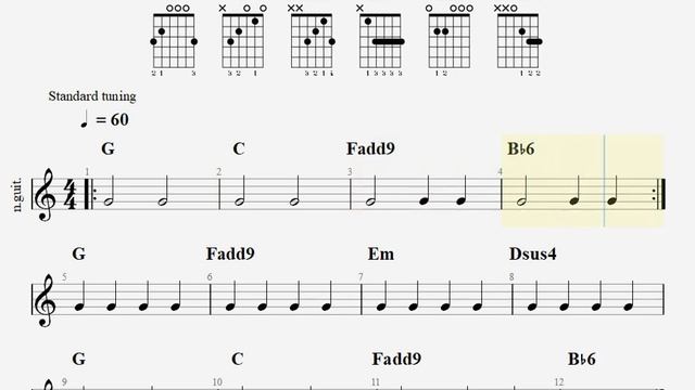 Упражнение для чтения нот начинающих гитаристов на 3-й открытой струне.Помогает развивать чувство ритма.