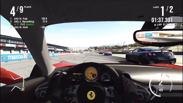 Check out blaze's channel! www.youtube.com/blaze17ams Follow me on twitter for all my Youtube updates! https://twitter.com/#!/UpsideDownAce Forza 4 Ultimate Challenge Ep. 13: Ferrari 458 vs Nissan GTR What's up viewers! Welcome back to episode 13 of the ultimate challenge series! This challenge was submitted by Blaze17Ams saying to race the Ferrari 458 against the Nissan GTR on Laguna Seca. This was a fun race, and it came down to the wire! If you want to submit something for the next ultimate challenge, comment below with the car you want me to drive, the cars you want to computers to drive, and the track to do it on!