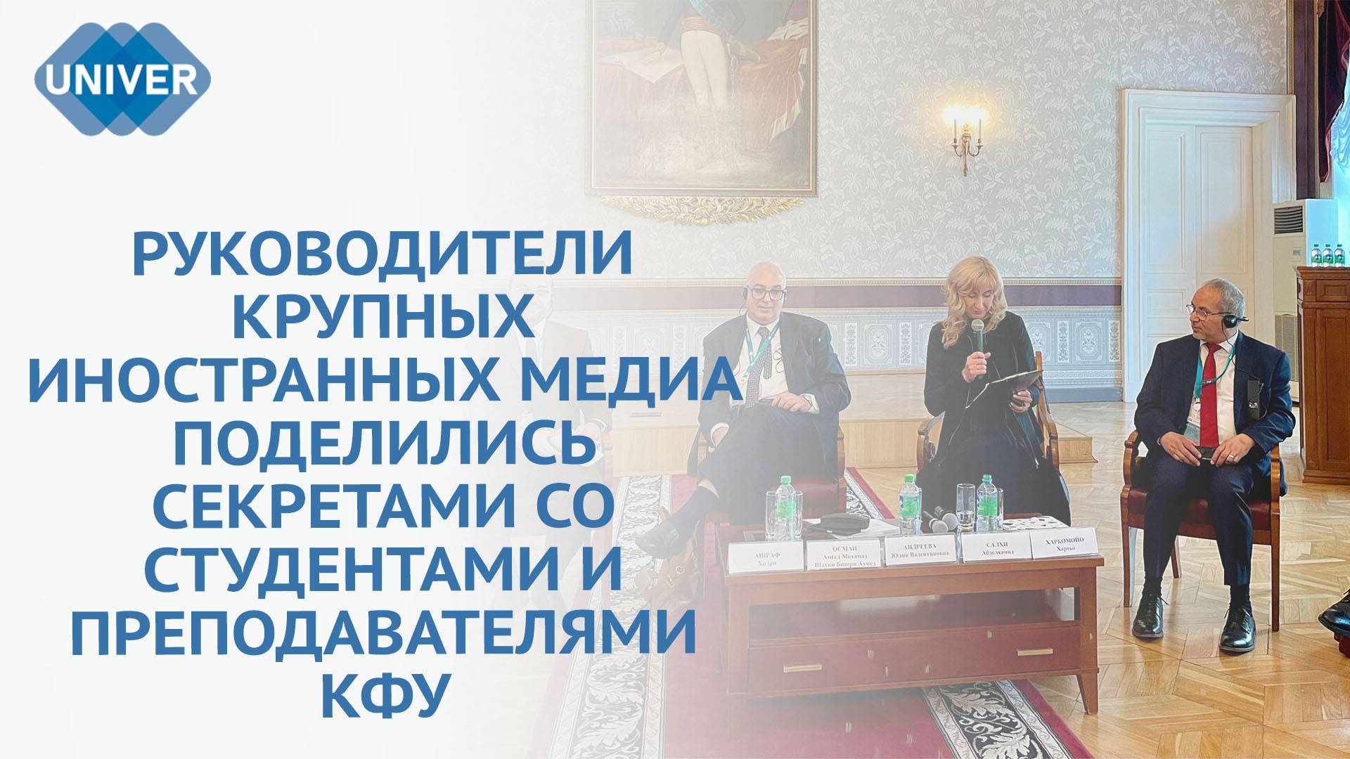 16 мая в Императорском зале Казанского федерального университета состоялась уникальная встреча руководителей крупных иностранных медиа со студентами вуза. Как она прошла, расскажем в сюжете. Подписывайтесь: сайт - https://media.kpfu.ru/univer-tv ВКонтакте - https://vk.com/univertv