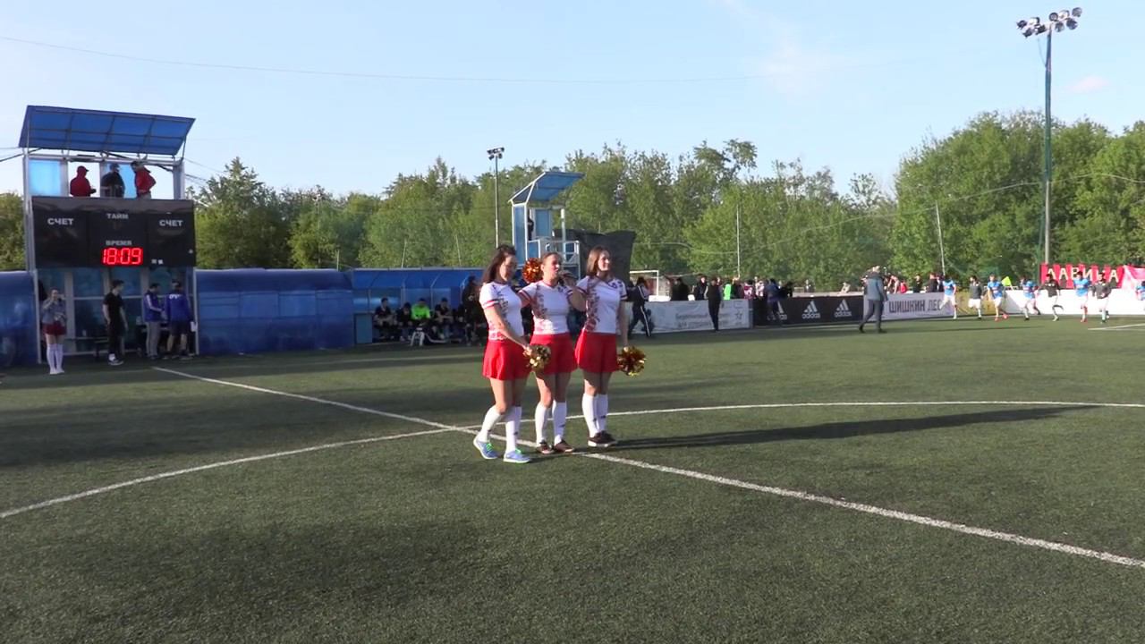 Выступление на турнире "Континентальная футбольная лига-2019". Анастасия Раинская исполняет свою песню "Нужен гол", на подтанцовке - участницы ЖФК "МедВедь": Регина Касымова и Надежда Нурмагомедова