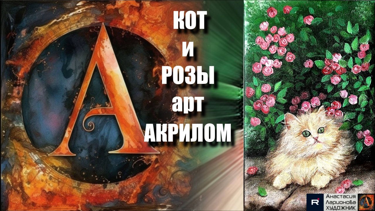 🐱🌹Рисуем КОТА под кустом РОЗ за 15 минут! |Акрил для начинающих + релакс с музыкой 🎵|УРОК|АртГейм