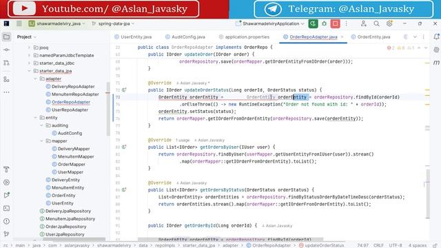 Задонатить: https://yoomoney.ru/to/4100110584940159 Курс по Spring framework на языках Java/Kotlin на примере разработки клиент-серверного приложения для заказа шаурмы) Исходный код ко всем урокам по модулю "Data JPA": https://github.com/AslanJavasky/shawarmadelivery_java/tree/spring-data-jpa https://github.com/AslanJavasky/shawarmadelivery_kotlin/tree/spring-data-jpa Задонатить преподавателю: Карта Сбер: 5469 6000 2144 3601 (Аслан) Карта Т-Банк: 2200 7001 1633 9259 (Аслан) Карта Альфа-Банк: 2200 1523 1074 7517 (Аслан) ЮMoney(ЯндексДеньги): 4100110584940159 для донатов из-за рубежа: https://www.donationalerts.com/r/aslan_javasky Спасибо :) Без VPN: https://vkvideo.ru/playlist/-229755761_3