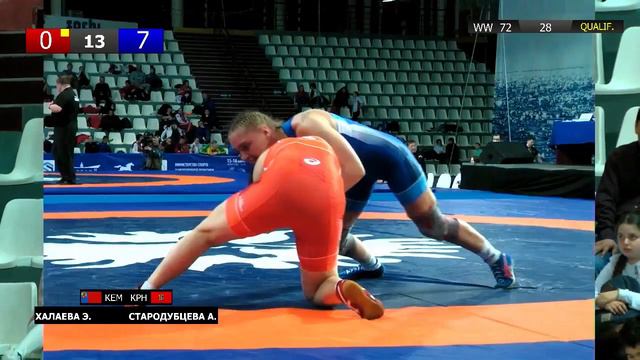 ЧР по вольной борьбе среди женщин. Халаева Э.(КЕМ) и Стародубцева А.(КРН)-квалификация, 72кг
