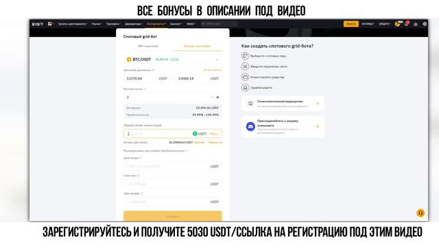 ✅ByBit бонус 5030$ после регистрации + ПОЛНОСТЬЮ нулевые комиссии при покупке и продаже криптовалюты: https://partner.bybit.com/b/cryptomir Реферальный код для регистрации в приложении с телефона: 43870 ✅Binance бонус 100$ после регистрации + торговая скидка на комиссии: https://accounts.binance.com/ru/register?ref=ZC6PZBMJ Реферальный код для регистрации в приложении с телефона: ZC6PZBMJ ✅Телеграм-канал https://t.me/criptomagiya Партнерская программа Bybit https://partner.bybit.com/b/0subpartner ❗️Это максимально возможные бонусы и скидки. Действуют только при регистрации по этим ссылкам. Все скидки даются навсегда❗️ ПОЛЕЗНЫЕ ВИДЕО: Регистрация и верификация на бирже Bybit https://youtu.be/DbStmySUVjE Регистрация и верификация Binance https://youtu.be/ptf1L5p7ww0 Торговые боты Bybit (Байбит)! Всё, что нужно знать про Торговые Боты на Bybit. Фьючерсный бот Bybit - пошаговая инструкция! В этом видео мы окунемся в захватывающий мир криптовалютной торговли на бирже Bybit! Узнаем, как эффективно использовать Торговый и Фьючерсный боты Bybit для максимизации прибыли и снижения рисков. 🤖 Торговый бот Bybit - ваш верный помощник в автоматизированной торговле на рынке криптовалют. Мы расскажем, как настроить его, выбрать оптимальные стратегии и избежать распространенных ошибок. 📈 Фьючерсный бот Bybit - ваши двери в мир деривативов. Разберем, как этот бот поможет вам работать с фьючерсами на Bybit, повышая вашу финансовую грамотность и обеспечивая более точные прогнозы движения рынка. 🤷♂️ Что такое бот Bybit? Если вы только начинаете свой путь в криптовалютной торговле, не переживайте! Мы разъясним основные понятия и принципы работы торгового бота Bybit, чтобы вы могли приступить к торговле с уверенностью. Не упустите возможность улучшить свои торговые навыки и повысить эффективность на платформе Bybit. Подписывайтесь на наш канал и не пропустите новые увлекательные обучающие материалы! 💰📊 #Bybit #ТорговыйБот #ФьючерсныйБот #Криптовалюты #ТорговляНаBybit