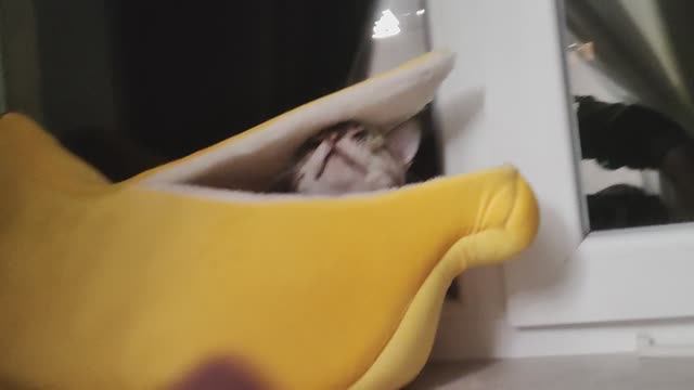 Купили коту лежанку в виде банана )) 00:00 начало 00:11 кот на окне 00:22 хороший кот 00:36 конец