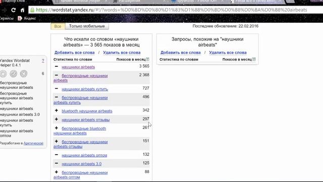 подбор ключевых фраз из Яндекс Вордстат