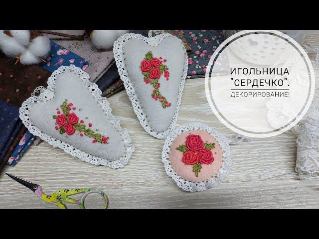 Игольница в виде сердечка с вышивкой рококо - нежные розочки украсят любую игольницу, попробуйте сшить себе такую же)))
