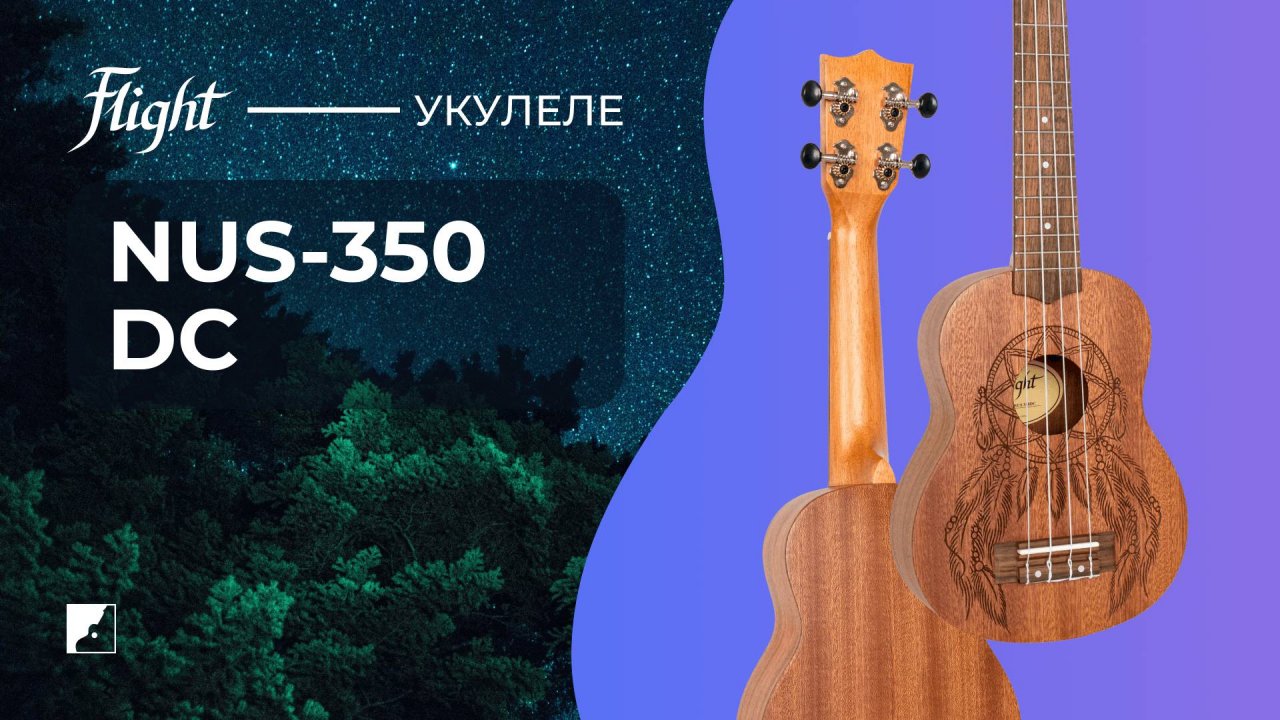 Купить укулеле Flight NUS350 DC: https://dynatone.ru/p51617_flight_nus350_dc_ukulele-soprano Укулеле серии Flight Natural Уникальная гравировка в виде ловца снов Яркое громкое звучание Размер: сопрано Верхняя дека: сапеле Корпус: сапеле Гриф: окоуме Фирменный чехол в комплекте