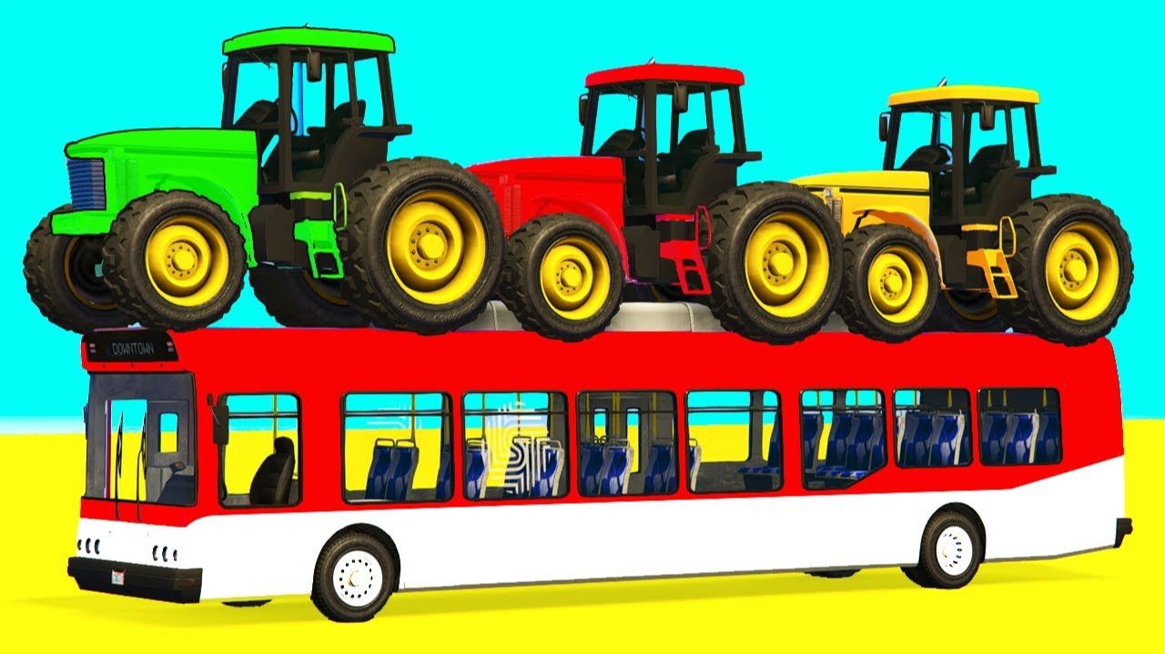 Цветные Тракторы на Автобусе с Человеком-пауком и Супергероями на Вертолете Мультфильмы для детей
