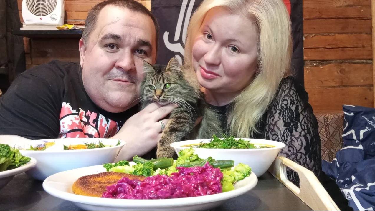 комбо мукбанг - свекольный салат, котлеты из рыбы, стручковая фасоль, брокколи, щи на курином бульоне