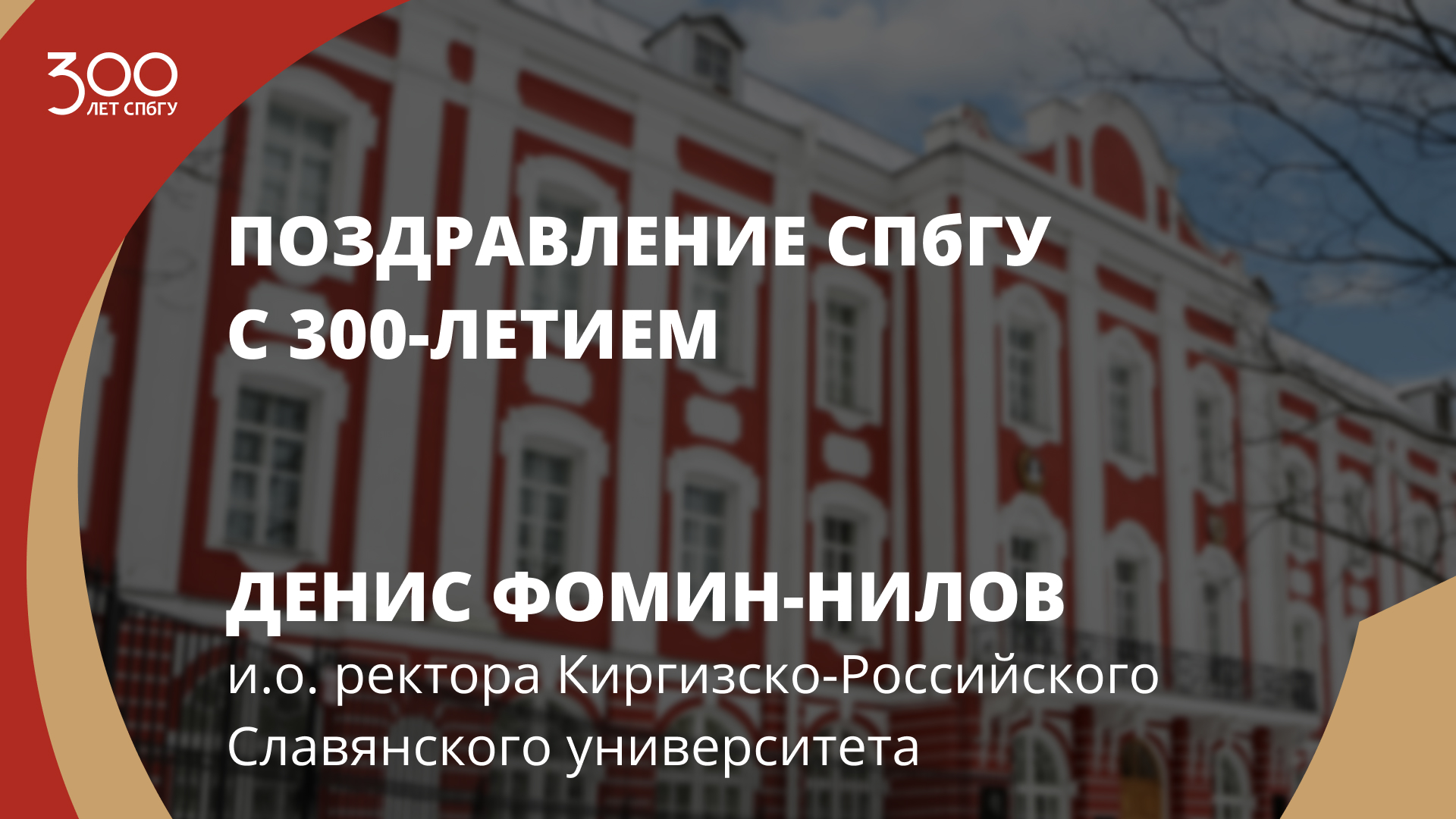Поздравление СПбГУ с 300-летием от и.о. ректора Киргизско-Российского Славянского университета Дениса Фомина-Нилова