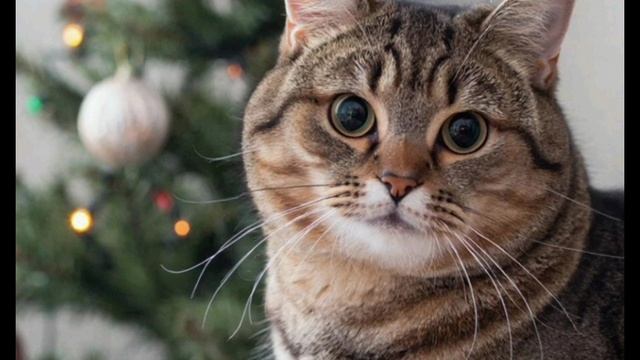котики наряжают новогоднюю ёлку
