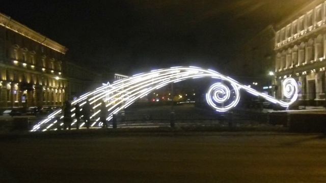 Под Новый год на Синем мосту красиво мигала светодиодная лента