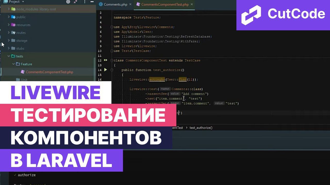 Друзья всем привет! В эфире cutcode и сегодня мы поговорим о livewire, а именно о тестировании livewire компонентов в laravel. Тема тестирования очень важна. Я категорически не советую ею пренебрегать, даже на небольших проектах. ❗️❗️❗️как делать сложные сайты на laravel? Это просто с cutcode! Поддерживай мой проект - https://cutcode.ru/ Угостить меня кофе - buymeacoffee.com/cutcode Мой помощник Тэйлор готов выдать тебе подарок. Забирать тут - https://cutcode.ru/chat-bot --------------------------------------------------------------------------------- И никогда не отправлять проект в продакшн без скажем так зеленого света в тестах. Да хотя бы основные моменты должны быть покрыты тестами. Как проводить в livewire тестирование компонентов? В laravel есть удобный функционал для тестирования и с этим у нас проблем нет. Но как быть если наше приложение целиком имеет компонентный подход и используется livewire? Друзья не паникуем! В livewire есть для этого все инструменты. Давайте рассмотрим документацию по livewire. В разделе testing мы видим компонент пример. Пример класса по тестированию и в конце документации мы видим все доступные методы для тестирования. С ними мы сейчас поработаем в нашем примере чтобы посмотреть как это работает. За основу на тестирования возьмем компонент комментарии из моего проекта cutode. Он небольшой, простой и с ним будет как раз очень удобно поработать. Давайте вернёмся в код, точнее не вернемся, а откроем код. Создадим класс тестирование. Так видим что класс создан. И вот наш класс по тестированию, с которым мы сейчас будем работать и тестировать компонент comments в рамках livewire. У нас по умолчанию один здесь метод тестовый, давайте начнём с тестирования авторизации. Почему с авторизации? Потому что компонент comments работает только для авторизованных пользователей, для тех кто не авторизован будет выдано сообщение что необходимо авторизоваться. --------------------------------------------------------------------------------- делитесь этим видео с друзьями: https://www.youtube.com/watch?v=rOAIBCcwTkU подпишитесь на YouTube-канал: https://www.youtube.com/channel/UCkKZ3S8JiB5nUAaTYhpCwzQ?sub_confirmation=1 Тестирование livewire компонентов laravel --------------------------------------------------------------------------------- наш сайт: https://cutcode.ru/ наш instagram: https://www.instagram.com/cutcoderu/ Наш telegram-канал: https://t.me/laravel_cutcode