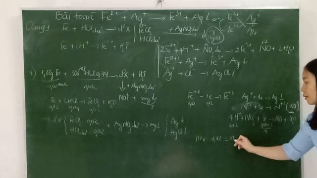 Dạng 1. Bài toán Fe2+ tác dụng với Ag+. Cho Fe+HCl dư tạo ddX+AgNO3 dư tạo kết tủa
