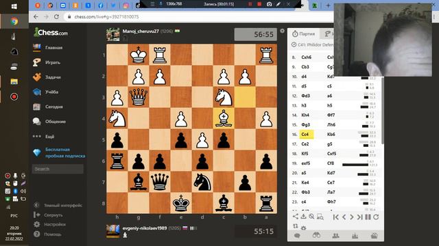 Индия -39 ходов Я черными Шах и Мат ладьей ОН ГЛУПО ПОТЕРЯЛ ФЕРЗЯ