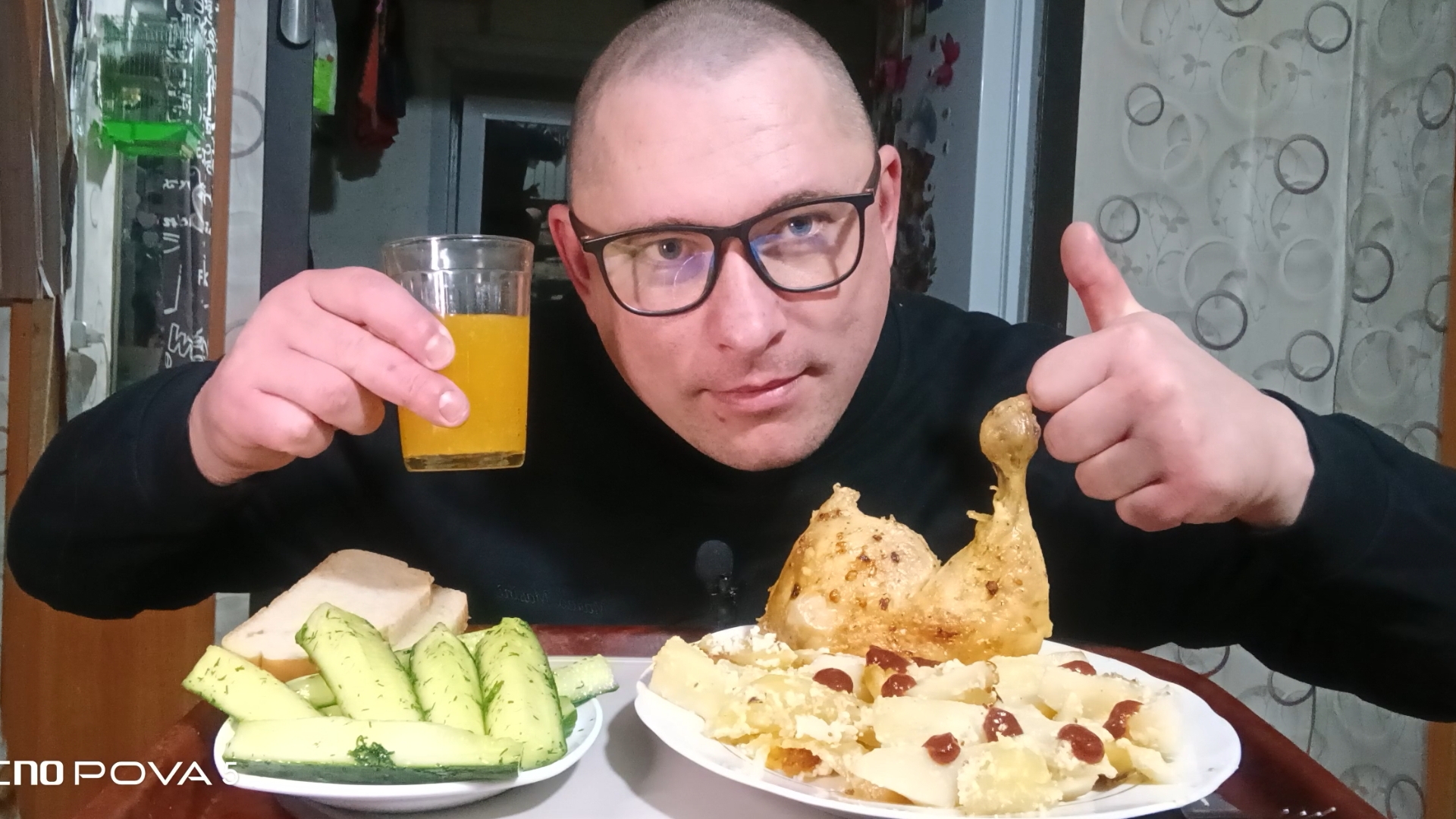 мукбанг/картошка с курицей, маринованные огурцы/