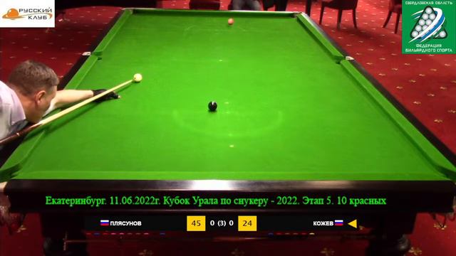 Кожев Алексей(фора +7) - Плясунов Олег . Кубок Урала по снукеру 2022. Этап 5. 10 красных.