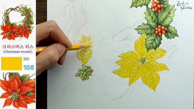 Christmas wreath drawing | 크리스마스 리스 그리기 | Botanical Art