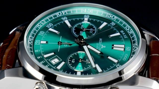 Новинка в знаменитой серии 1117 от Jacques Lemans: стильный кварцевый хронограф с повышенной водостойкостью 20 атмосфер, которую обеспечивают завинчивающаяся заводная головка и крышка. Массивный корпус диаметром 44 мм сделан из нержавеющей стали. Кнопки хронографа продуманного размера удобно использовать, а для рельефной заводной головки предусмотрена дополнительная защита. На зеленом циферблате с полировкой в виде солнечных лучей расположены крупные часовая и минутная стрелки и риски с люминесцентным покрытием, которое помогает определить время даже в темноте. Хорошо читаются дополнительные индикаторы 24-х часов, счетчики минут и секунд, окошко даты. Предусмотрена тахиметрическая шкала: ее используют, например, для определения скорости. В часах установлено ударопрочное минеральное стекло Crystex. Удобный ремешок темно-коричневого цвета из натуральной кожи (верхняя часть) и силикона (внутренняя часть) дополнен прошивкой, что позволяет продлить срок его службы. https://jacques-lemans.ru/catalog/watch_wristband_jl/1-2117d-naruchnye-chasy-jacques-lemans/?sphrase_id=219096