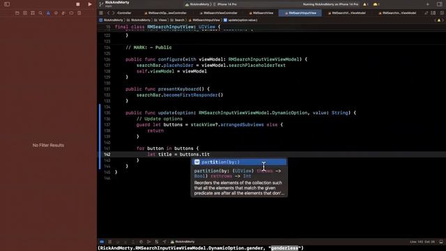 Build FULL iOS App in Swift: Part 44 (Rick & Morty | 2023) – Selecting Search Option