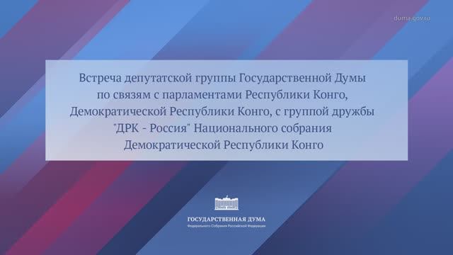 Смотрите плейлист Государственная Дума https://rutube.ru/plst/1278469 Встреча депутатской группы Государственной Думы по связям с парламентами Республики Конго, Демократической Республики Конго, с группой дружбы «ДРК — Россия» Национального собрания Демократической Республики Конго 12.11.2025, 17:00